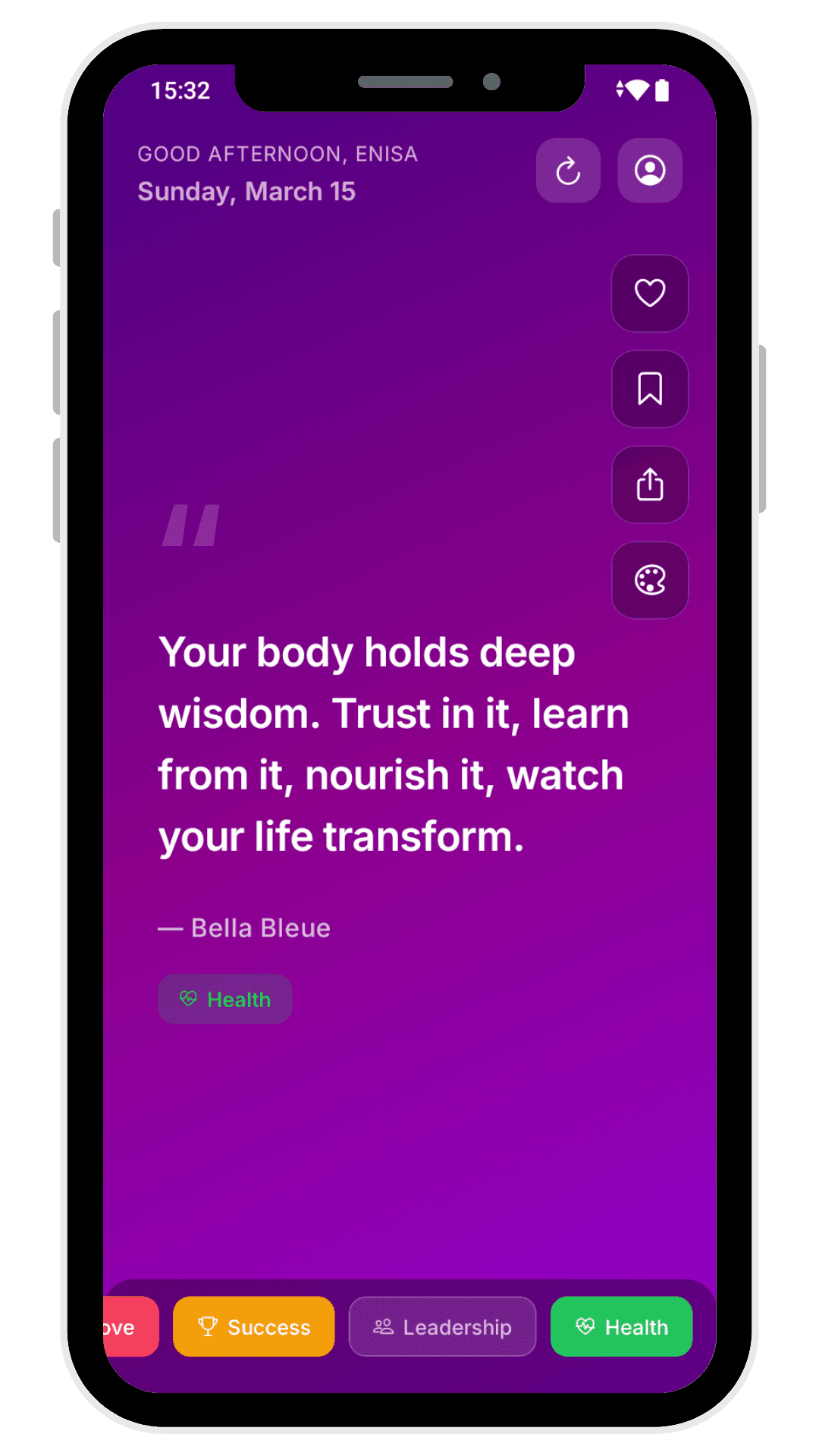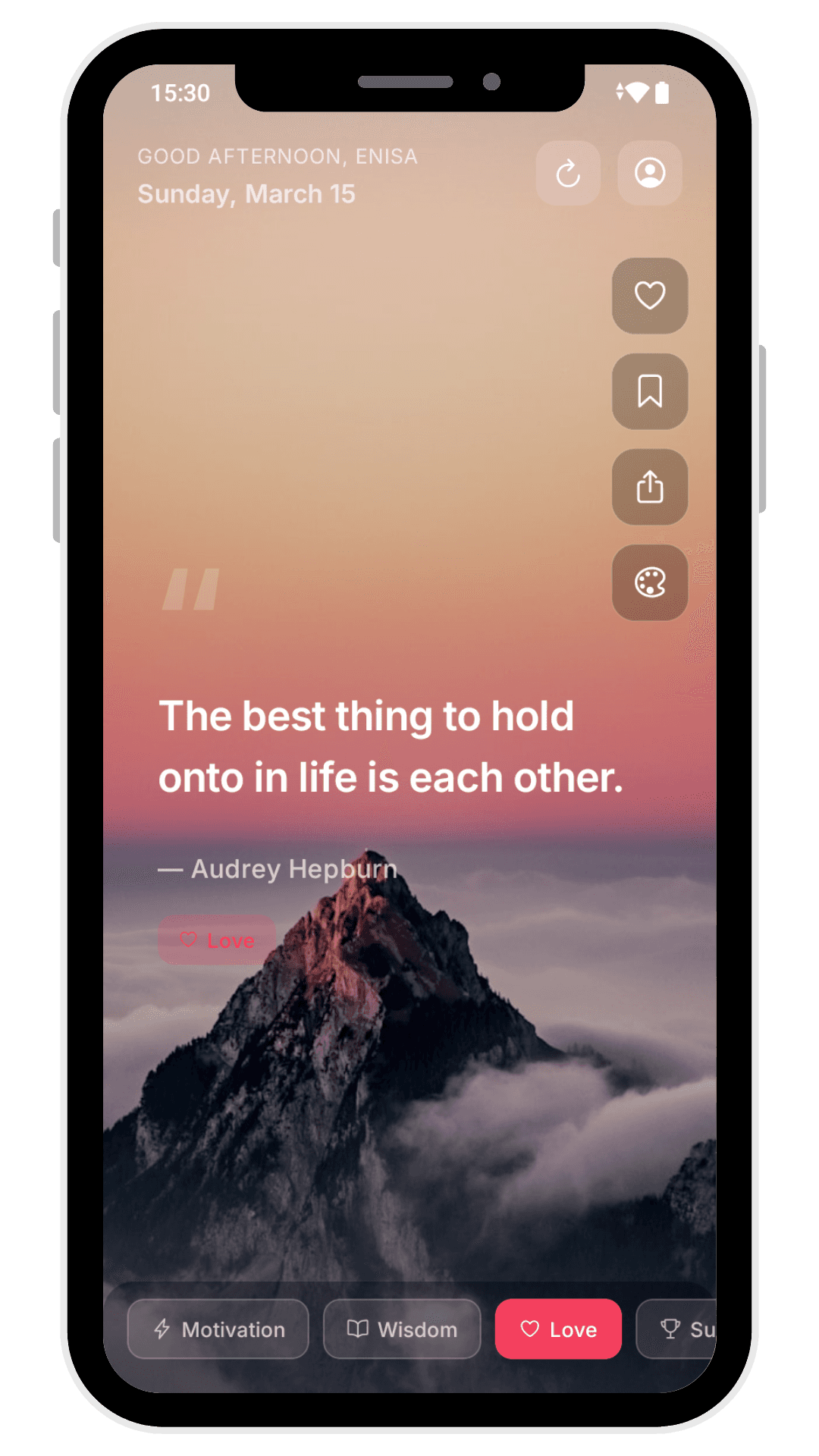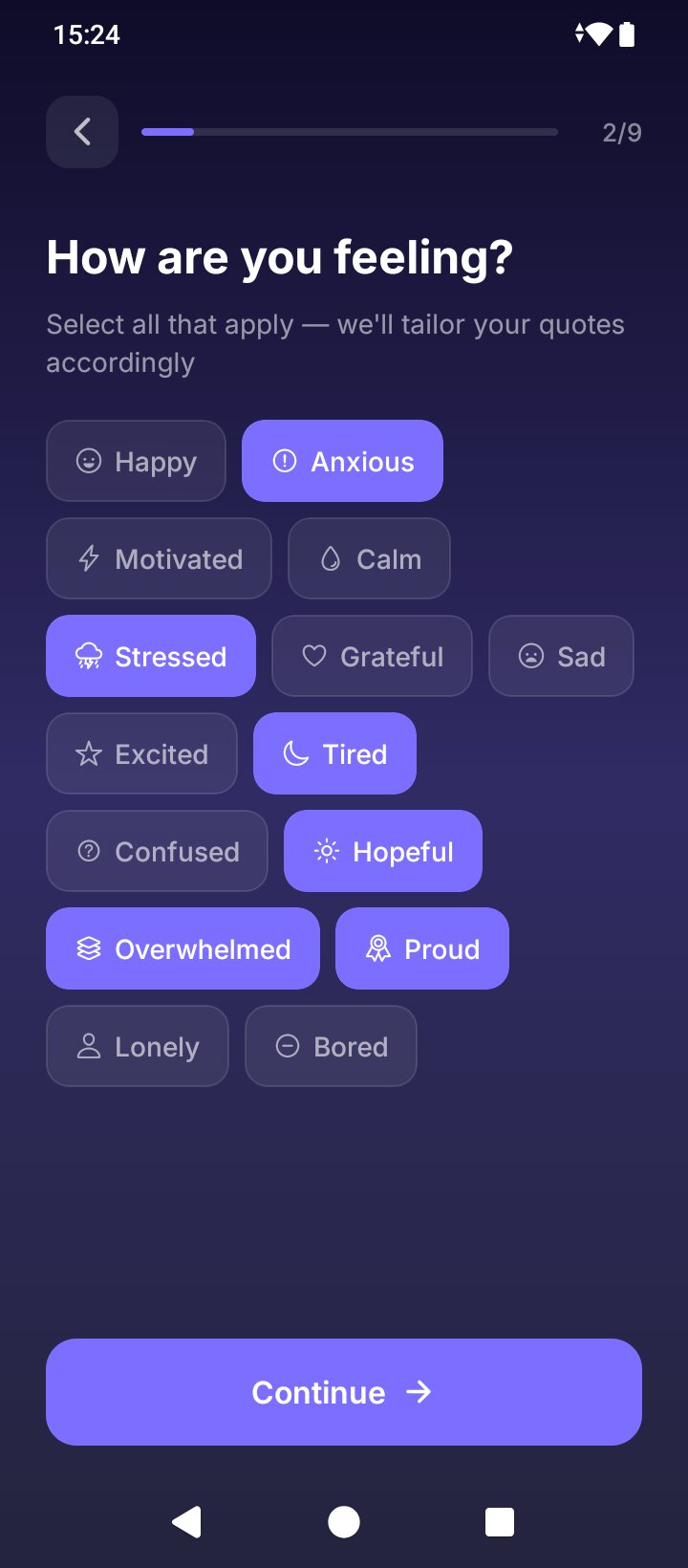 Personalised to your mood, delivered every day. 20,000+ quotes across 40 categories.
